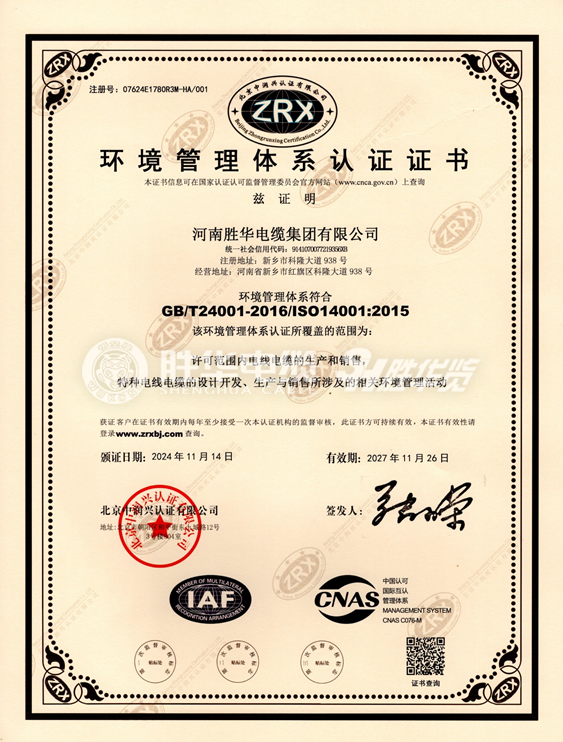 环境管理体系认证证书