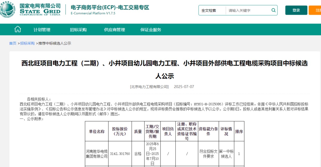 小编从国家电网有限公司电子商务平台获悉,在西北旺项目电力工程(二期)、小井项目幼儿园电力工程、小并项目外部供电工程电缆采购项目中,河南樱花视频集团有限公司成功中标,金额为3142,301760万元。 樱花视频免费。